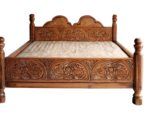 Elegant Teakwood Storage Cot with spacious under-bed storage. Crafted from solid teak wood for durability, style, and extra functionality for modern bedrooms.
